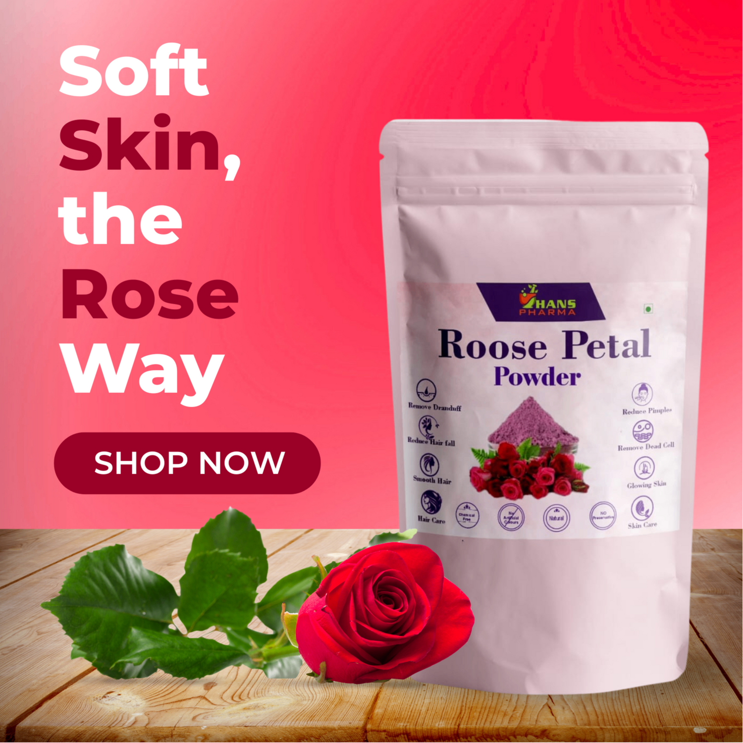 Hans Pharma Roose Petal Powder is a gentle, natural remedy for glowing skin and healthy hair. Made from pure dried rose petals, it helps remove dead skin, reduce pimples, control dandruff, and improve hair texture. Ideal for face packs, scrubs, and hair masks. 100% natural